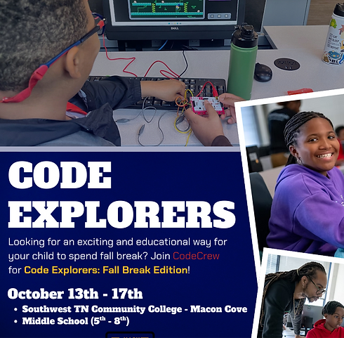 Looking for an exciting and educational way for your child to spend fall break? Join CodeCrew for Code Explorers: Fall Break Edition!